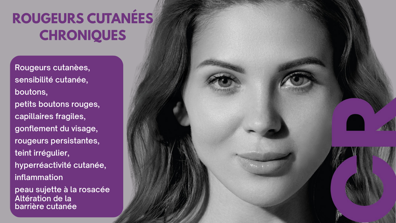 La rougeur chronique est associée à une inflammation. Elle se manifeste par une dilatation des vaisseaux sanguins (vasodilatation), une augmentation du flux sanguin, une perméabilité capillaire accrue et une migration des neutrophiles vers le tissu affecté à travers la paroi capillaire, ainsi que par des signes cliniques tels qu’une rougeur cutanée persistante. Elle peut avoir de multiples causes et toucher tous les types de peau.